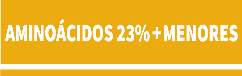 AMINOÁCIDOS 23% + MENORES Complejo nutricional enriquecido con aminoácidos y elementos menores de rápida asimilación, corrige rápidamente las deficiencias de elementos menores.19 aminoácidos libres de gran aporte energético y rápida recuperación ante situaciones adversas o estrés.